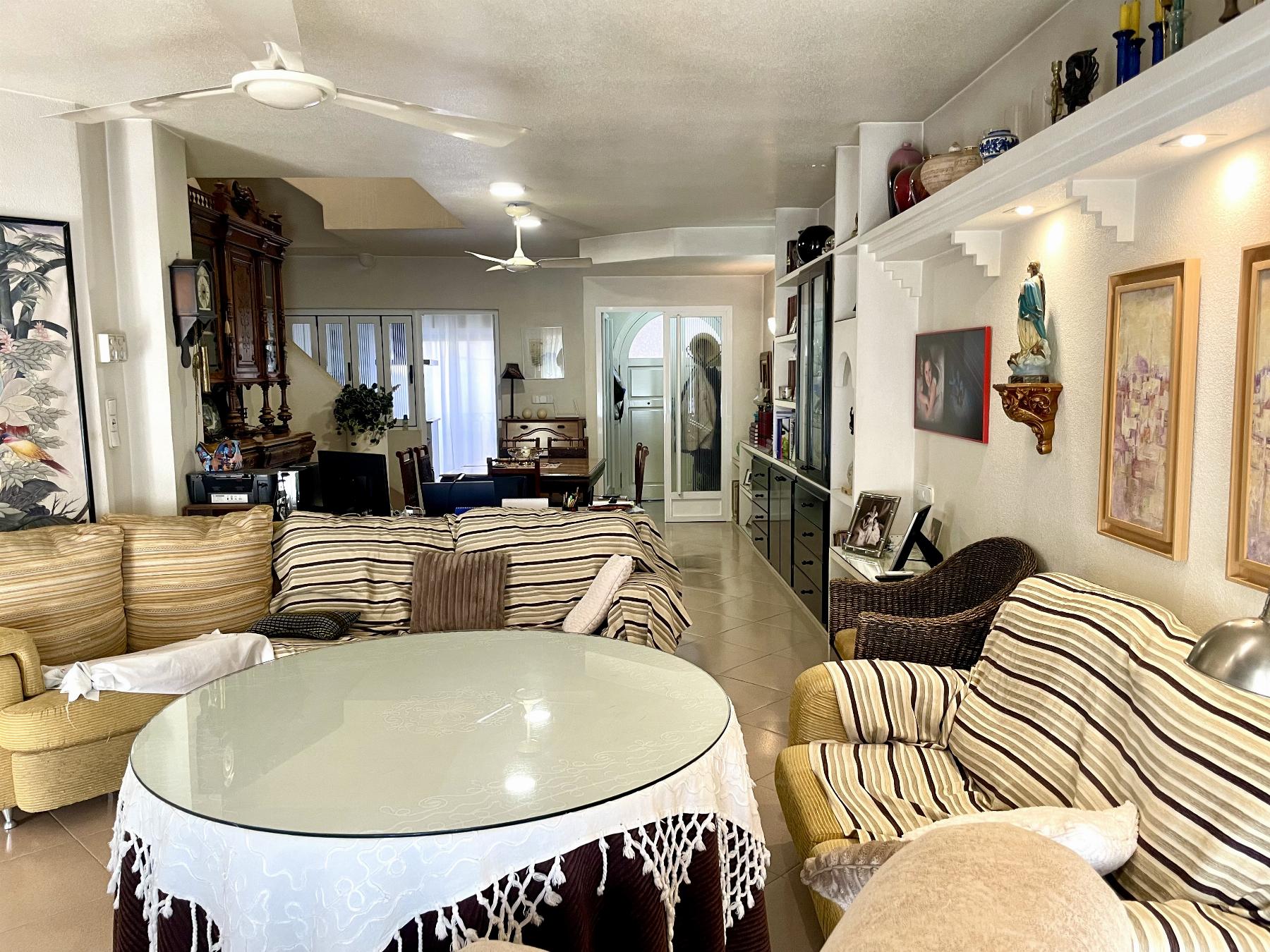 En cuanto a los interiores, destacan los acabados clásicos y cuidados, con mobiliario de madera maciza, amplias zonas de estar, buena entrada de luz natural gracias a sus grandes ventanales, y detalles como estanterías de obra y zonas de comedor diferenciadas, que aportan personalidad y funcionalidad a la vivienda.